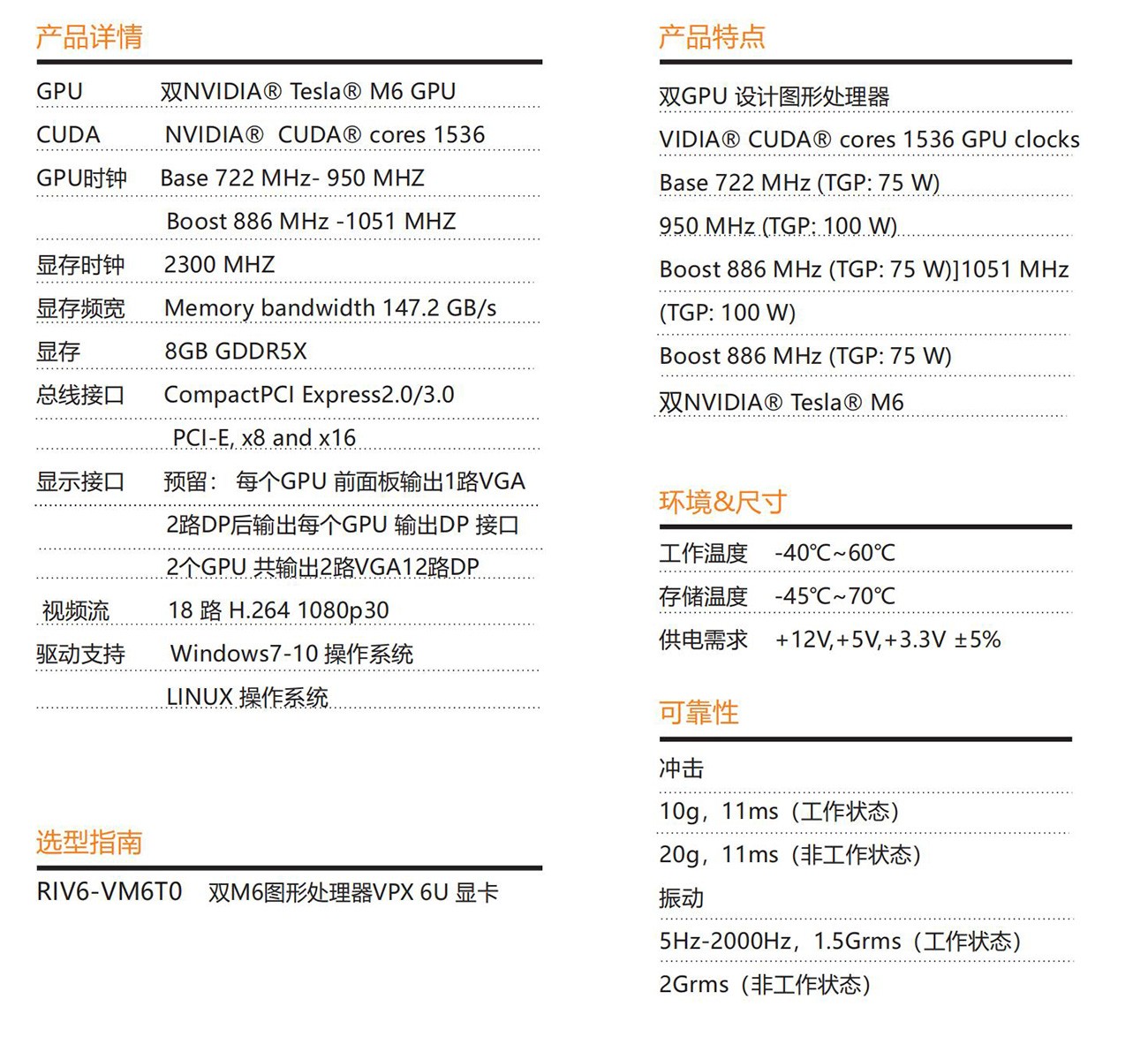 一款高性能雙GPU VPX結(jié)構(gòu)獨(dú)立顯卡,采用二個(gè)NVIDIA? Tesla?M6 圖 形 加 速 器 芯 片 設(shè) 計(jì) , NVIDIA? Tesla? M6 GPU Memory clock 2300 MHz為256BiT8GB GDDR5顯存 ;具有出色多顯示輸出接口、NVIDIA? Tesla? M6 GPU 加 速器針對(duì)刀片式服務(wù)器進(jìn)行了優(yōu)化,能為數(shù)據(jù)中心的虛擬工作站、桌 面和應(yīng)用程序提供高性能圖形。該加速器與 NVIDIA GRID? 軟件 無縫地配合工作 ,可使企業(yè)虛擬化包括專業(yè)圖形應(yīng)用程序在內(nèi)的眾多 應(yīng)用程序,并將這些應(yīng)用程序傳輸?shù)皆O(shè)備中,該產(chǎn)品有良好計(jì)算和圖 形性