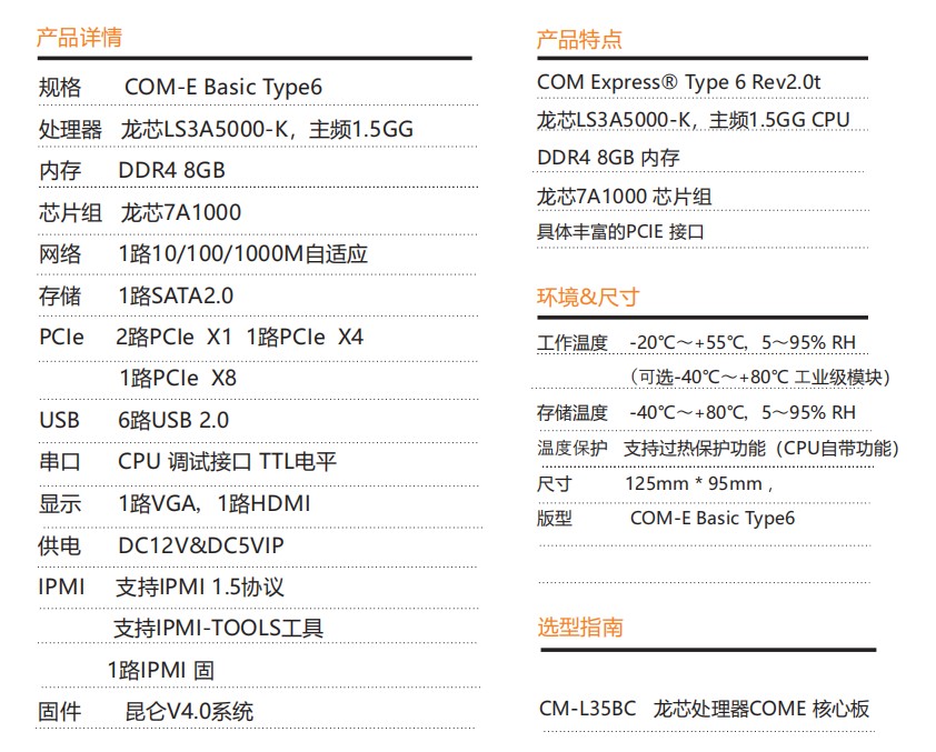 核心板采用龍芯3A5000CPU搭配龍芯7A1000橋設(shè)計COM- E Basic Type6版 型,板載 DDR4 8GB 內(nèi)存支持VGA,HDMI雙屏顯示輸出,是一款 國產(chǎn)自主可控集高性能,低功耗,高可靠性于一體的高集成度COME核心板,可廣泛應(yīng)用于能源等領(lǐng)域。